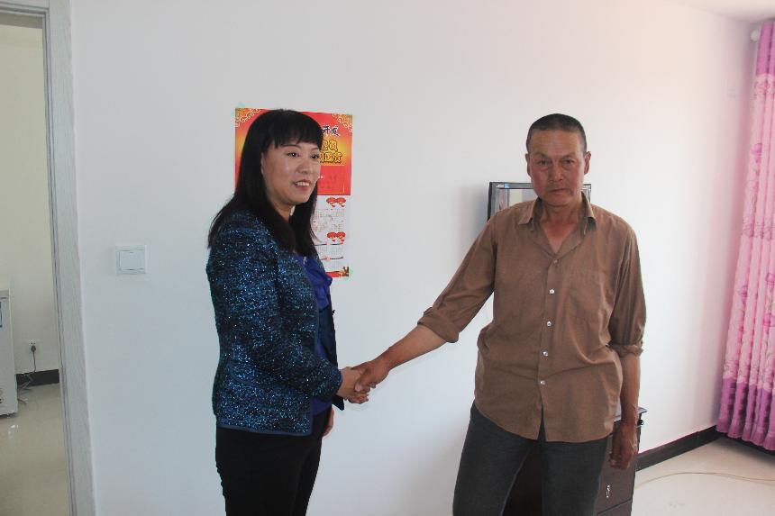 见到马艳丽检察长,李全红激动地热泪盈眶,紧紧握住马艳丽检察长的手,哽咽地说“谢谢马检、谢谢马检……”。看到李全红精气神十足的样子,马艳丽检察长欣慰的笑了,与他促膝谈心,详细询问了健康状况、经济保障、在幸福大院的生活等情况,并送上米面油等生活必需品。马艳丽检察长叮嘱村干部一定要心系百姓、关心贫困群众疾苦,下一步要加大帮扶力度,通过最低生活保障、临时救助、医保等,减轻生活负担,要通过项目实施和产业帮扶增加收入,切实解决他们的困难。临行前,听了马艳丽检察长的话,李全红坚定的说,感谢党和政府的好政策,让我的生活有了这么大的变化,住进了暖气房,喝上了自来水,没有你们的帮助就没有我的今天,我一定活得更滋润。马艳丽检察长拧开李全红家中的水龙头说“喝上了健康的自来水,打开了幸福的源泉,以后的日子一定会越来越好” !